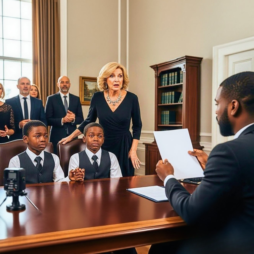 Mr. Johnson opened his briefcase, took out a sealed manila envelope, and laid it on the table with careful deliberation. His hand rested on it for a second longer than necessary. Then he looked at the three people in front of him: the widow hungry for money, the twins braced for impact.