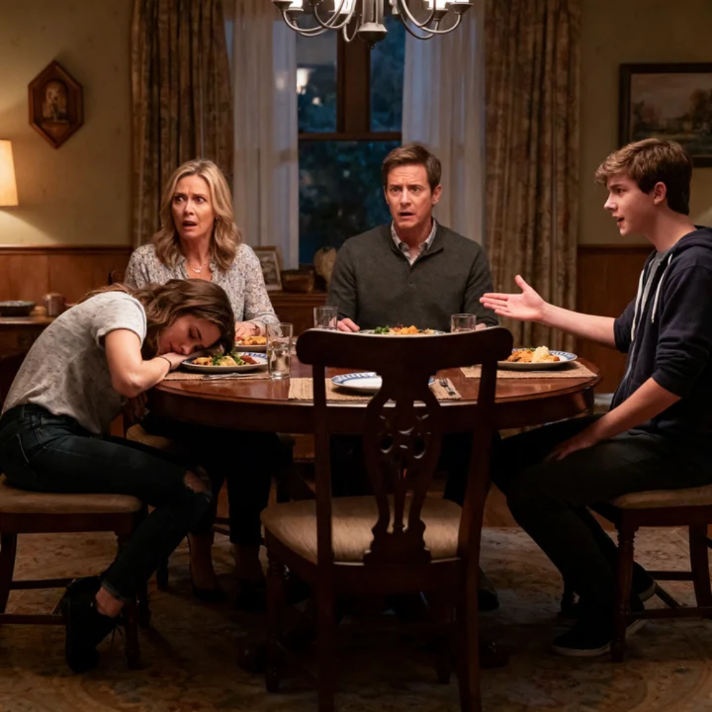 I gripped the edge of my chair so hard my knuckles went pale. My heartbeat thudded too loud in my ears, a heavy drumbeat that didn’t match the calm rhythm of forks scraping china and the small talk my parents insisted on maintaining like it could hold our world together.