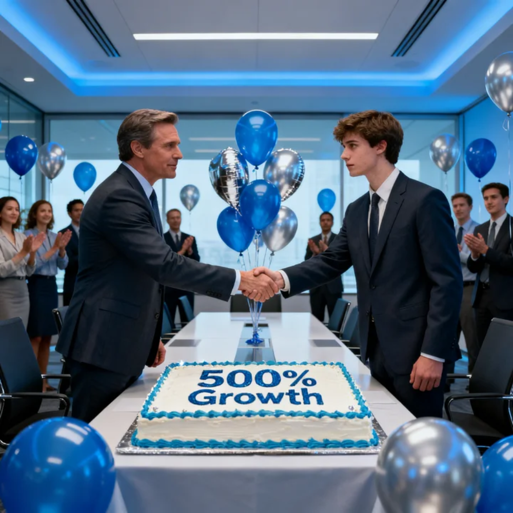 Five hundred percent growth in eighteen months, in the middle of a recession, on the top floor of a downtown American office tower where everyone wore polished shoes, cautious smiles, and the kind of ambition that could strip paint from steel.