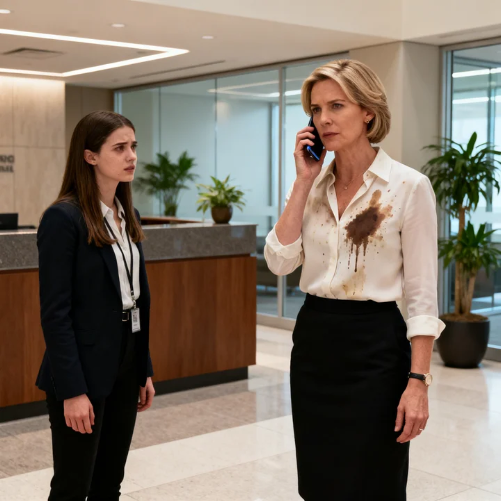 Coffee slid from the edge of my cuff and struck the floor in slow, tidy drops. The smell rose warm and bitter around me. Burnt beans. Sweet milk. Something faintly synthetic beneath it. I looked down at the front of my blouse, at the spreading stain, then back at the girl in front of me.
