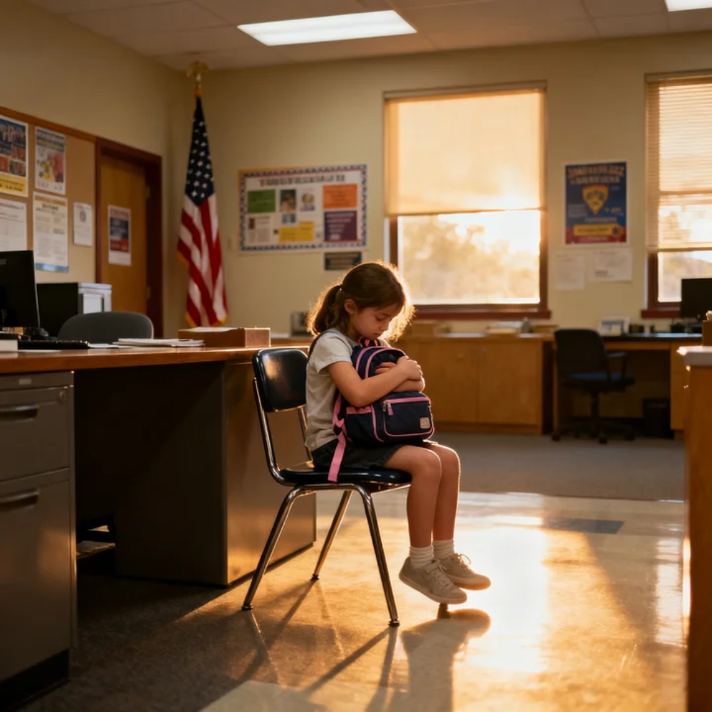 Twenty minutes later, he stepped into Riverside Elementary and was hit with the smell of waxed floors and pencil shavings and something faintly sweet from the cafeteria. It felt like being dropped into a different life. The front office staff looked up with the kind of judgment that didn’t bother pretending to be neutral. A secretary lifted her chin toward a hallway without a word.