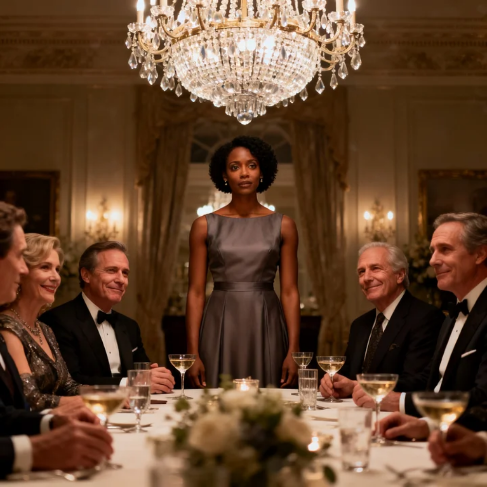 A thousand-dollar cufflink paused mid-adjustment. A senator’s smile froze. A socialite’s laugh died in her throat. Servers halted with trays hovering like they’d been nailed to the air.