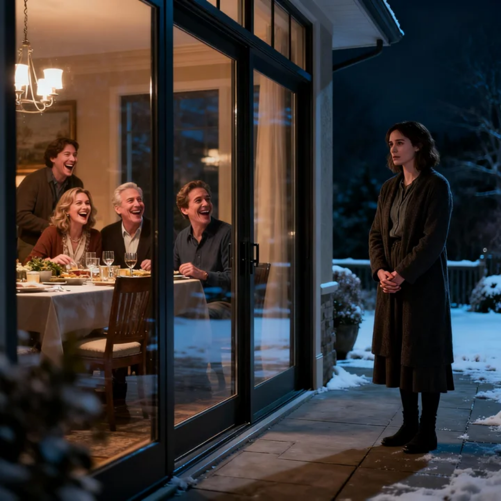 Evelyn stood at the top step with a covered pie dish warming her palms, listening to laughter erupt inside—loud, layered, the kind that said you were safe here, you were wanted here, you were one of us. Her heels clicked once on the brick, and the sound felt too sharp for a place that had learned to silence her.