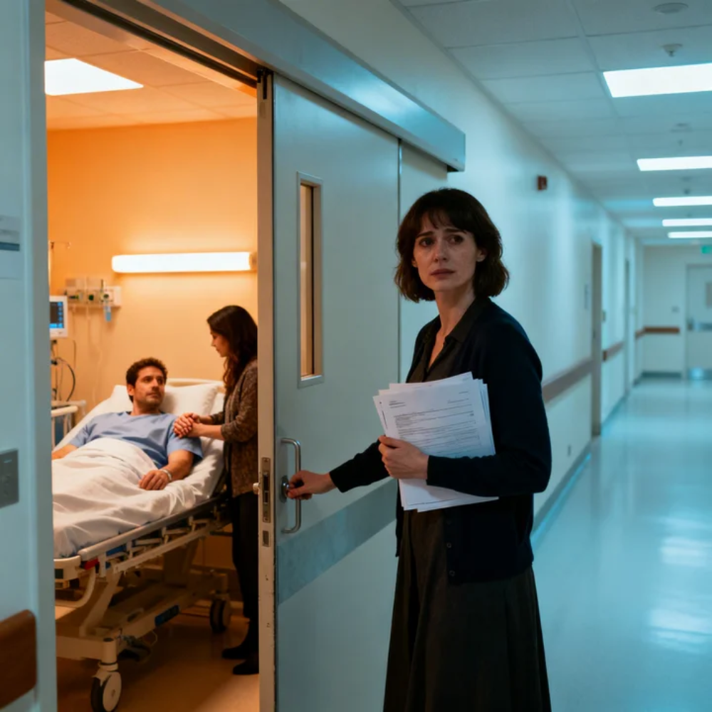 Not tentatively. Not politely. Not like an acquaintance offering support. She took his hand with the ease of someone stepping back into a role she had rehearsed before. The hand without the IV. Her fingers slid over his. Her eyes filled instantly with tears.