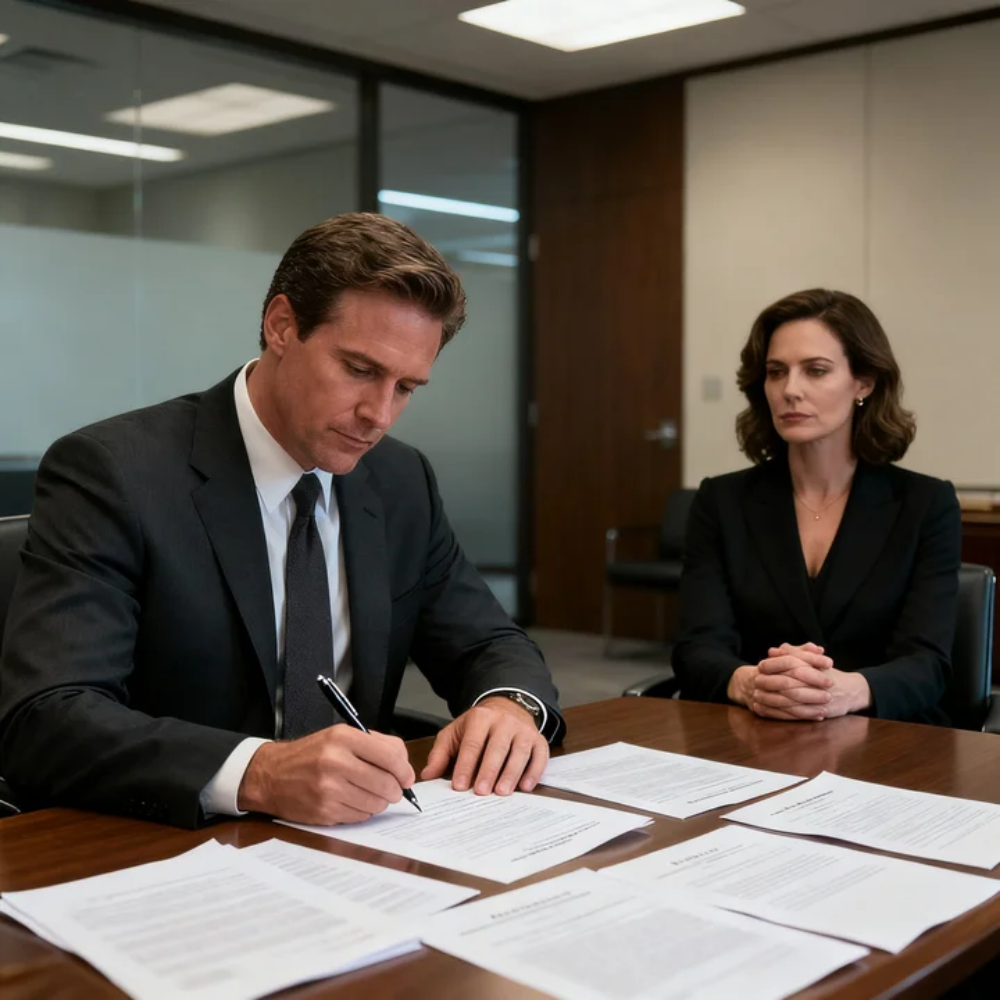 The shock was too complete for tears. Her mind moved through fragments. Their wedding in Cook County, the rented ballroom, his hand warm in hers, the way he looked at her like she mattered. Their honeymoon in Florence, laughing in the rain. The first house they bought. The years of building a life that now sat in a stack of documents with yellow tabs pointing to SIGN HERE like this was a lease, not a heart.