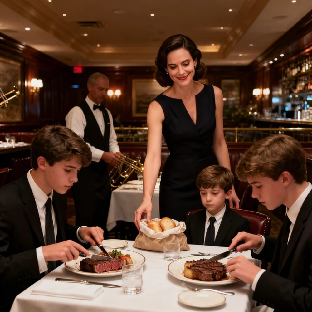 “We didn’t order for your son,” she said, smiling as her own kids chewed through $150 steaks like it was a normal Saturday. “But he can have the bread. The kids’ options are… a bit much for him.”