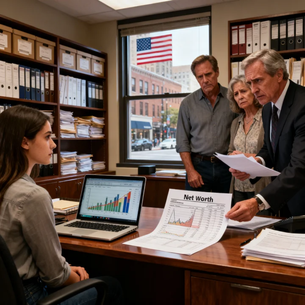 The office around us smelled faintly of laser toner, lemon furniture polish, and old coffee. Henderson & Associates Tax Services occupied the second floor of a low brick building in a New Jersey office park forty minutes outside Manhattan, the kind of place with too much beige carpeting, potted plants that were either dying or pretending not to, and framed motivational art on the walls reminding clients that financial planning was the path to peace of mind. Through the blinds behind Patricia’s desk, I could see a gray February sky and the parking lot where my father’s Lexus sat in the visitor spot like it owned the property.
