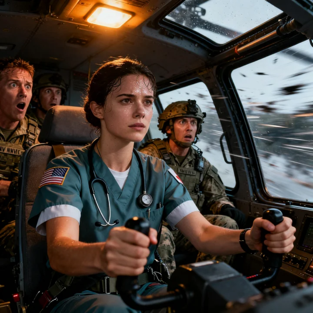 Ava stood slightly behind the counter, half in shadow, half under fluorescent glare. Blonde hair pulled back hard. Light blue scrubs under a winter parka that swallowed her shoulders. Calm eyes that didn’t dart, didn’t plead, didn’t ask permission. She counted supplies the way other people count exits. She listened to the hum of the generator like it was a language.
