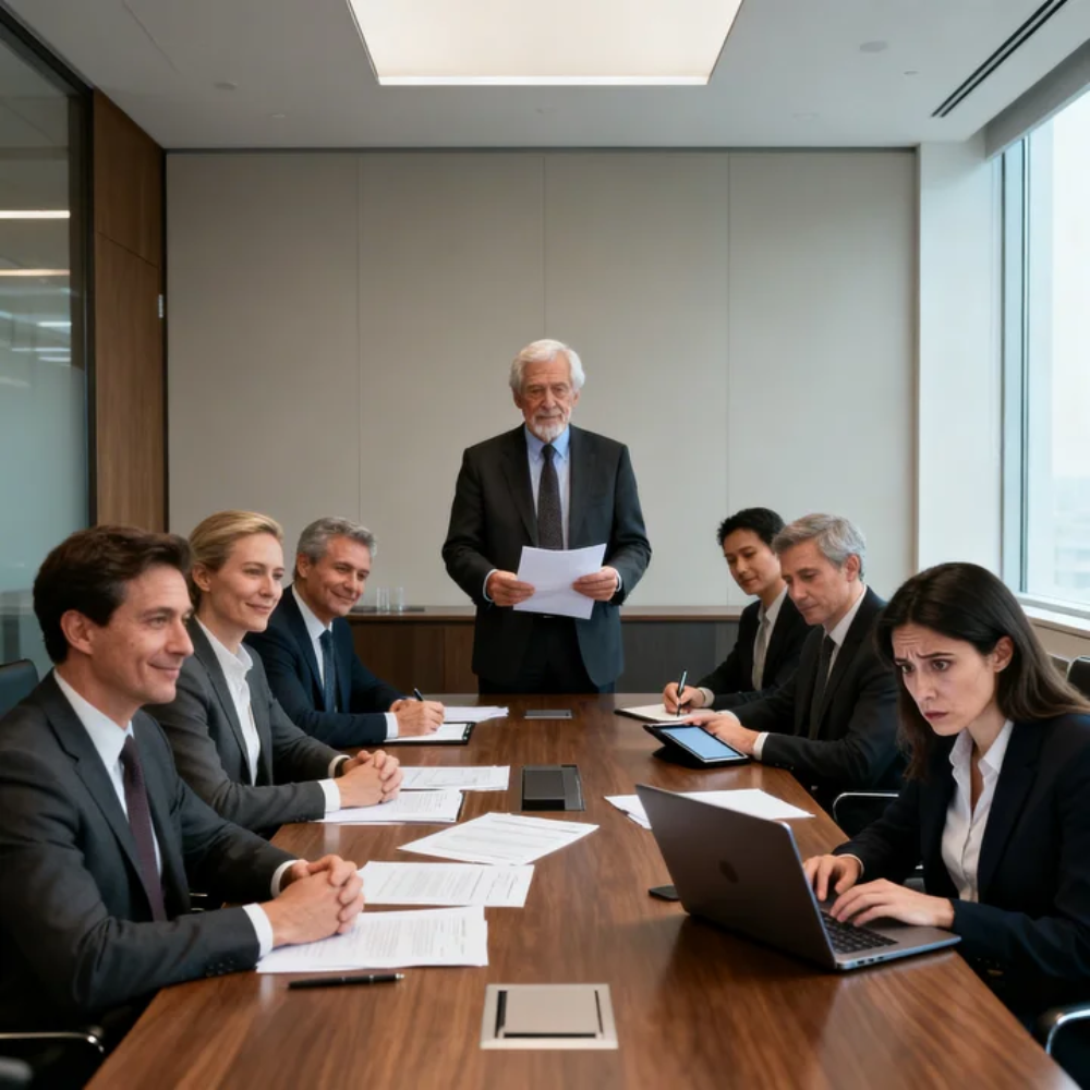 And when the moment comes, it stands up from the corner chair, walks to the head of the table, and quietly ends the transaction.