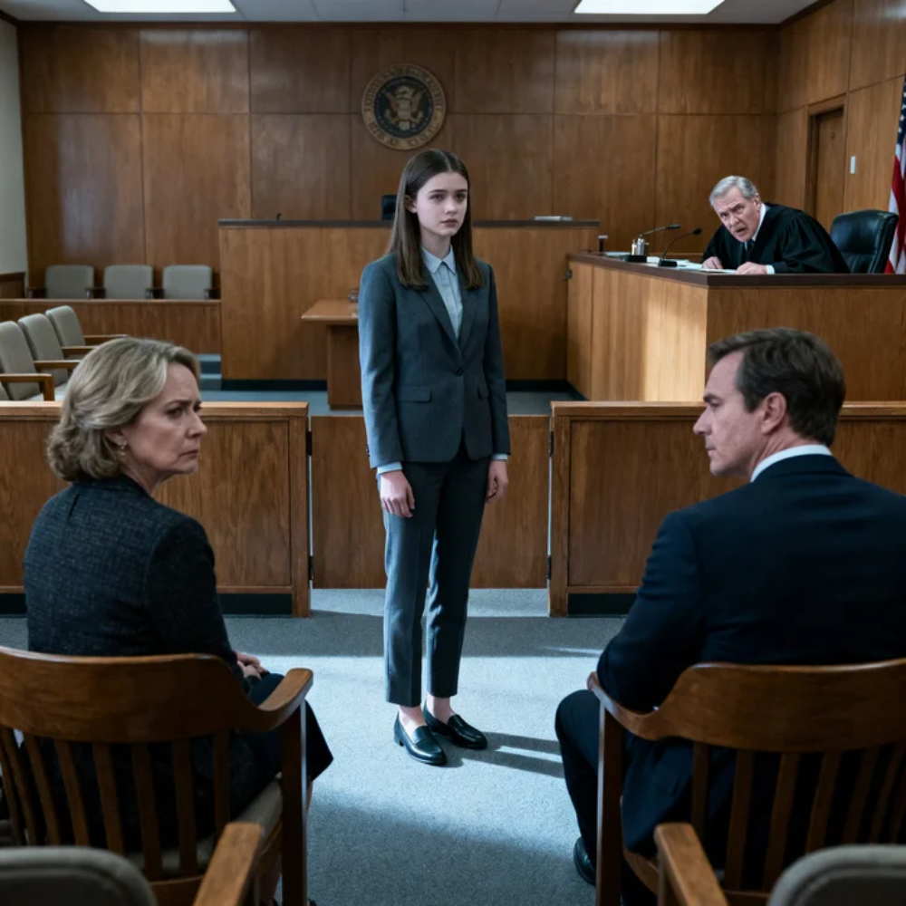 My low-quarter shoes struck the floor in measured clicks, each one clean against the hush. I moved past the bench at the back, past the spectators, past the front row where my parents sat. I could feel confusion rise from them like heat off asphalt. My mother turned halfway in her seat. My father’s brow tightened. Their attorney faltered for one fraction of a second.