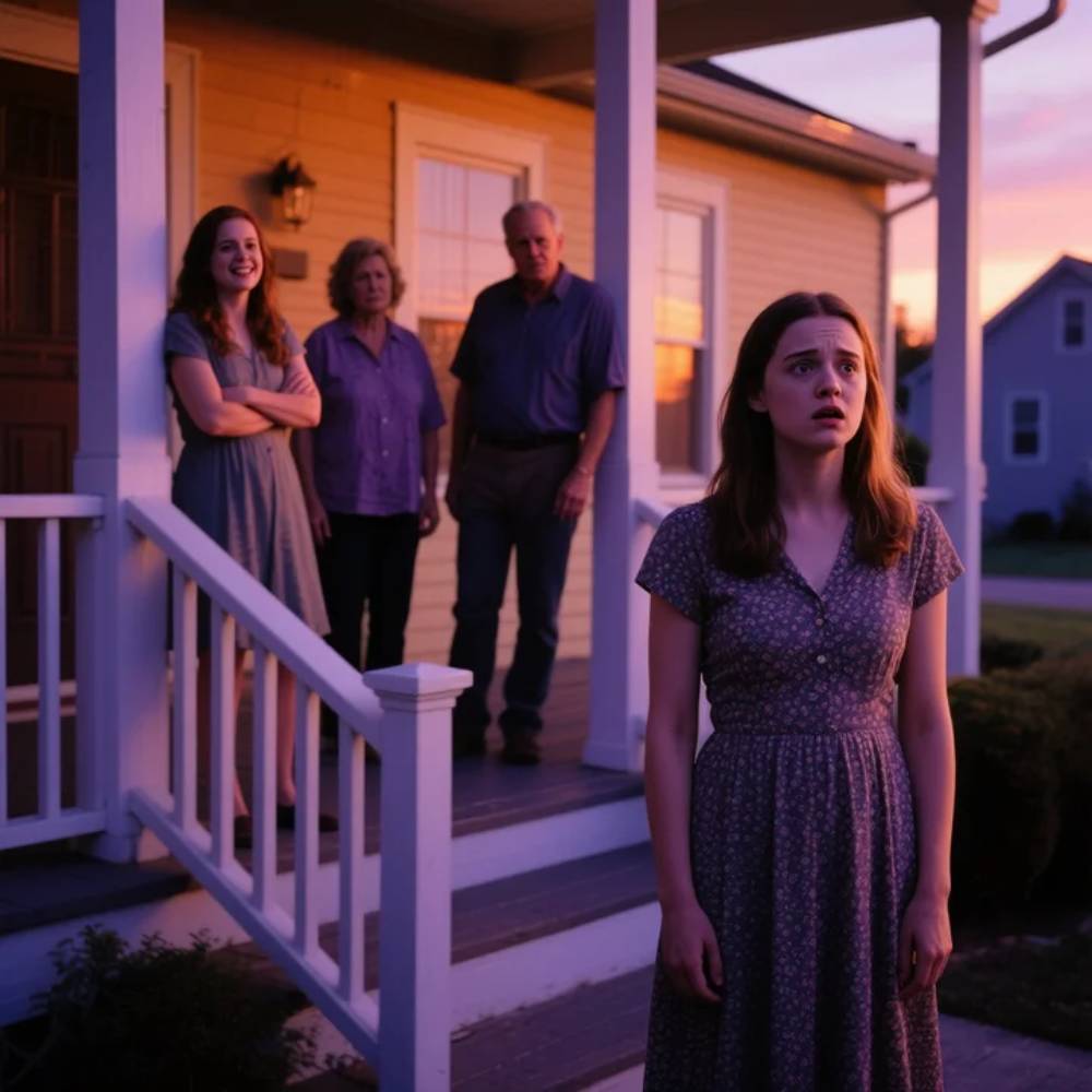 She didn’t move toward me. Didn’t open her arms. She just stood there on the sagging wooden step of the house on Maple Street, arms crossed over her black sweater, chin tilted up like she’d rehearsed that exact pose in the bathroom mirror. Behind her, the faded American flag over the porch railing hung limp in the late-afternoon air, the red bleached almost pink by too many Midwestern summers.