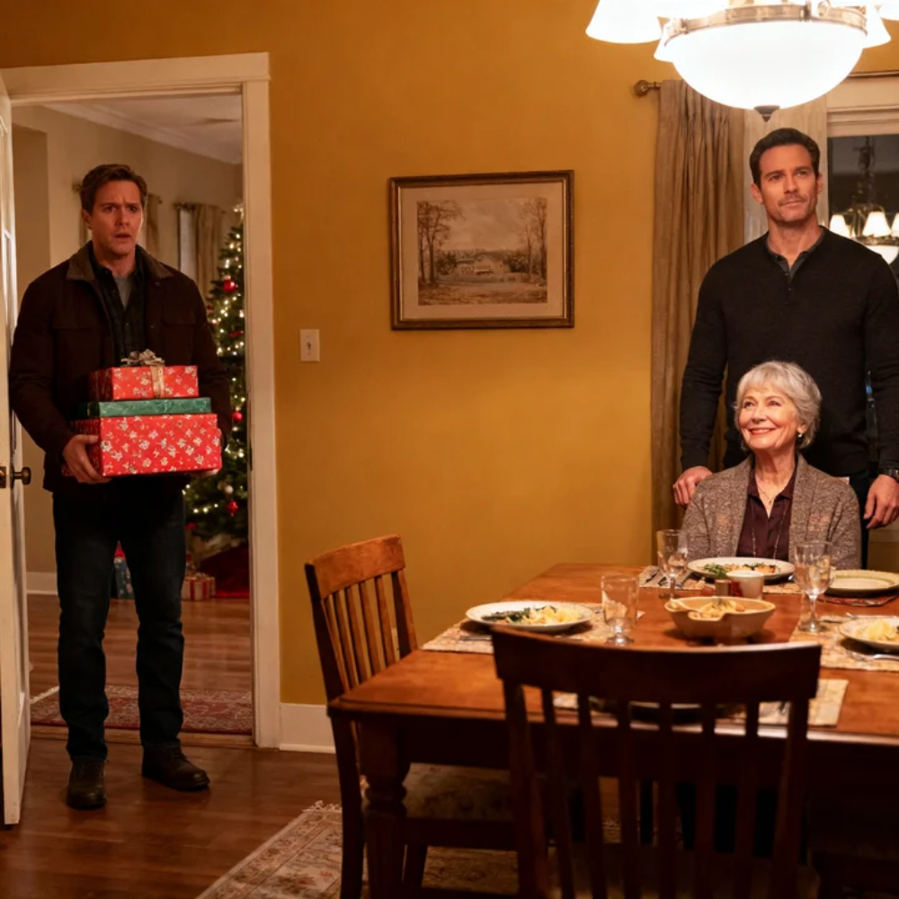 His gaze moved from the glowing tree… to the table… to the three place settings.