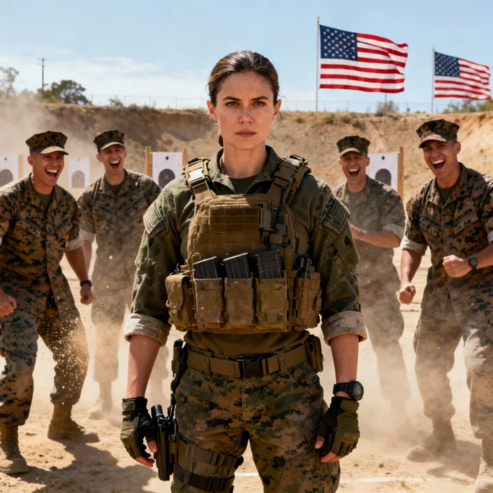 Behind him, four Marines laughed. Not friendly laughter. Not the kind that says we’re all in on it. This was the ugly kind, the kind reserved for someone they’d decided to reduce before the first shot was ever fired. The kind of laughter that turns a place into a stage and a person into a punchline.