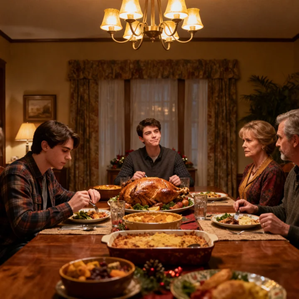 The scent of turkey and rosemary hung in the air, rich and warm, almost convincing. Outside, the suburban street was quiet, early Christmas lights twinkling on neighbors’ bushes, the kind of American postcard scene people pay money to recreate. Inside, my family was already sharpening their knives.