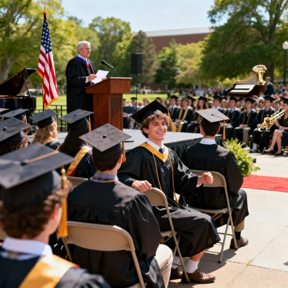 The sun hit the edge of my medal just right, and for a split second it threw a sharp flare across the graduation stage—bright enough to sting my eyes, bright enough to make the entire moment feel unreal.