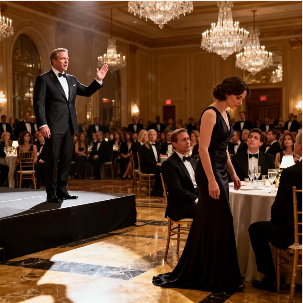 The ballroom went so quiet I could hear someone’s bracelet shift against a glass.