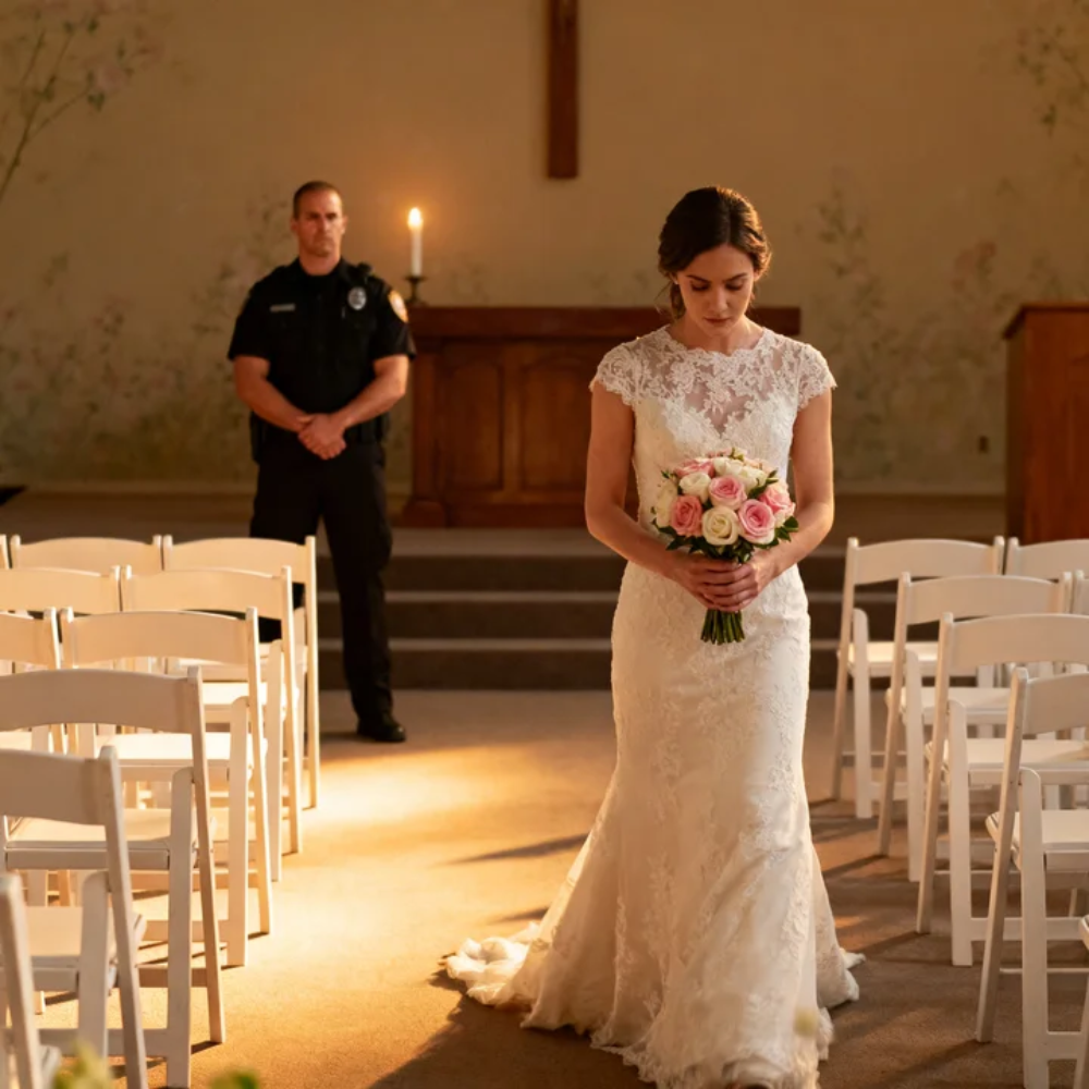 My name is Melinda Mullins. I’m twenty-eight years old. And if you want to understand how I ended up in a white dress walking toward a man with thirty-four empty chairs behind me and no family at my back, you have to go with me to a hospital waiting room in Pennsylvania at 2:17 in the morning, fourteen months before my wedding, when I met a man in a security uniform who changed everything.