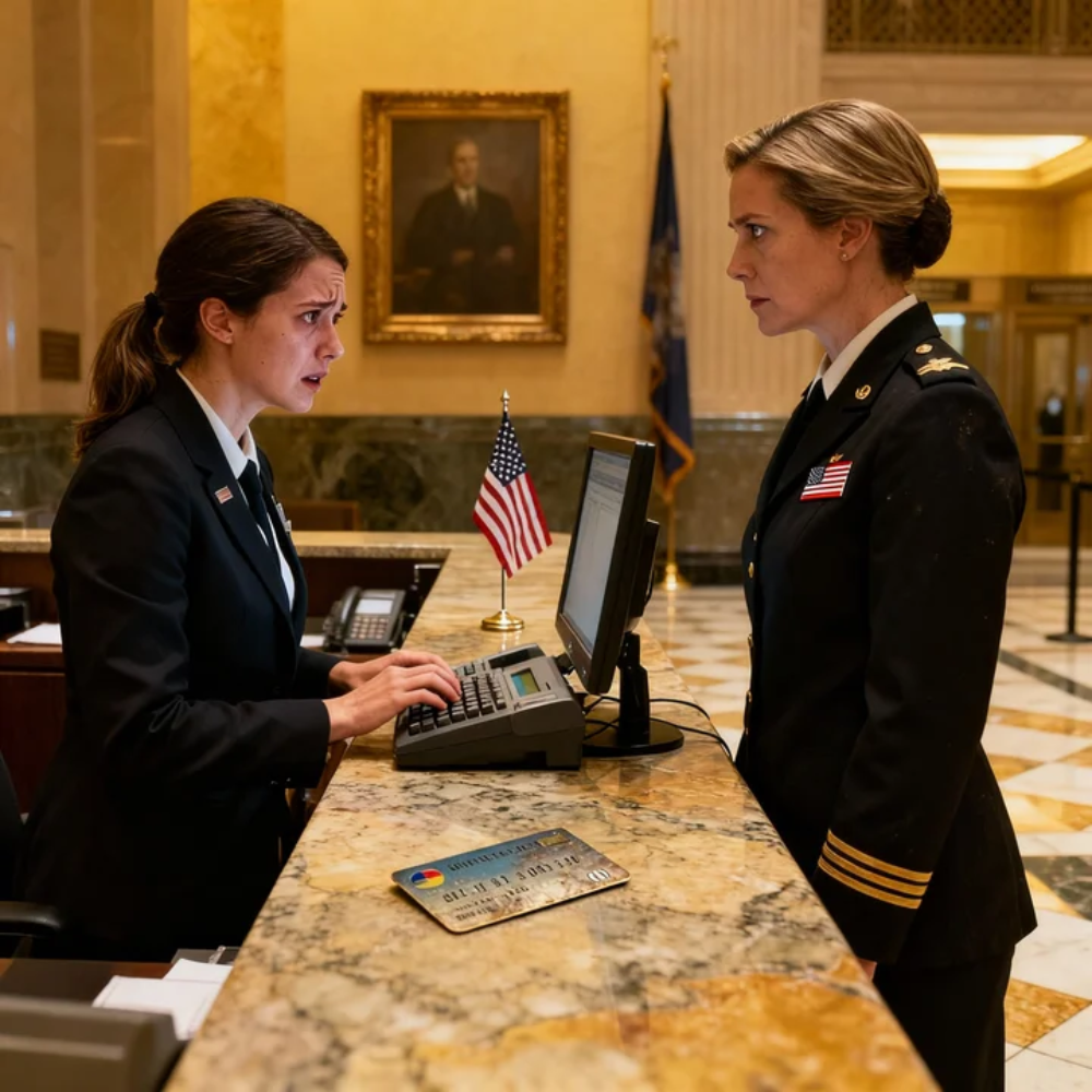 She didn’t answer right away. Her face had gone pale. She leaned closer to the monitor, then glanced up at me and really looked at me this time. Not at the uniform. Not at the card. At my face.