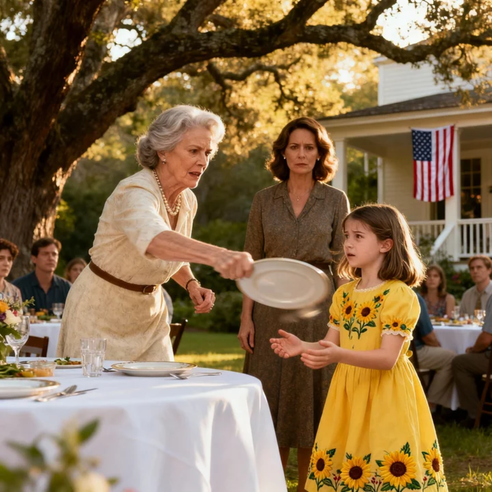 Forks froze mid-air. Conversations collapsed into silence. A wine glass hovered halfway to Aunt Linda’s lips, forgotten. Even the cicadas seemed to pause.