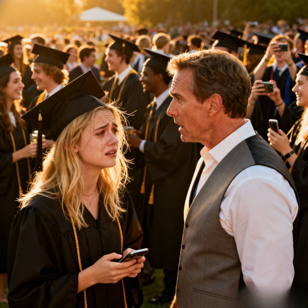 For a second, my brain refused to process the words, like they were in another language. Then they sank in, heavy and cold. The cheering around me blurred. Someone’s mom shrieked with pride, a camera clicked, a graduate stumbled on his way up the stairs, and all I could see was that text sitting on my phone like a knife.