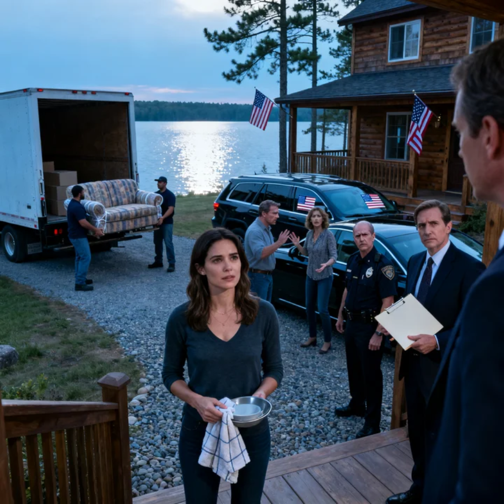 The movers climbed down from the truck, exchanging glances as they waited for instructions. My mom waved toward the porch as if she’d lived here her whole life. My brother Kyle stood with his hands shoved into his pockets, bouncing lightly on his heels, already scanning the cabin like he was deciding which room he wanted.