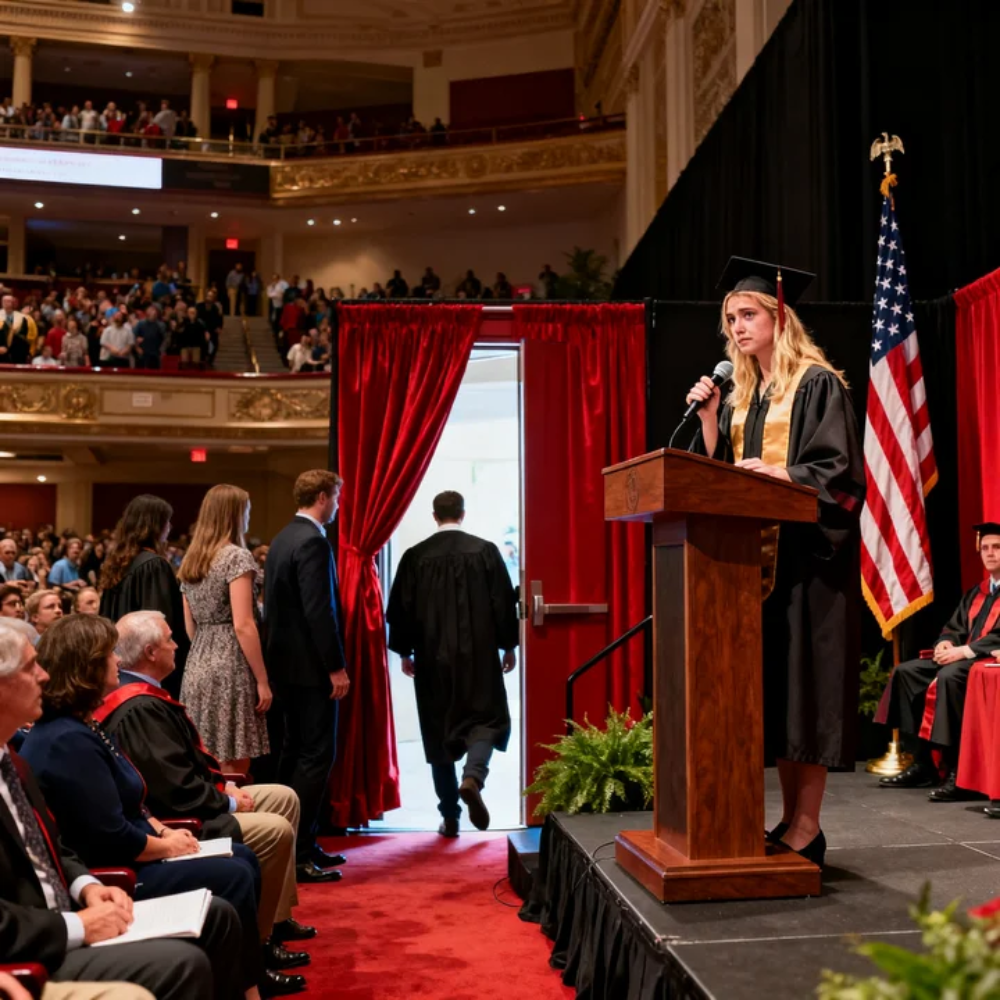 A ripple of confusion moved through the auditorium. Heads turned. People blinked, like they couldn’t believe what they were seeing. Families don’t leave during a valedictorian speech. Not normal families, anyway. Not families who understand what love is supposed to look like in public.