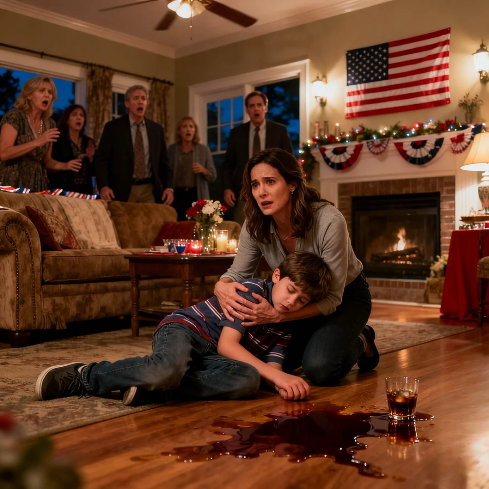 For a split second, my mind refused to understand what I was seeing. His mug was tipped sideways under the end table, a dark stain spreading across the rug. One of his hands was clawing at his throat. His face looked wrong—too pale around the mouth, too flushed across the cheeks, as if his skin could not decide what kind of danger it was in. His eyes were wide with a terror no child should ever know.
