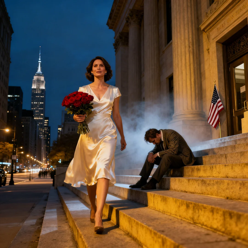 The flash of cameras hit first—sharp, white, relentless—turning the marble façade of the Midtown gala venue into something almost unreal,…
