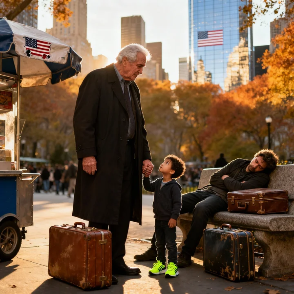 The first thing I saw was my grandson’s light-up sneakers blinking like a distress signal against the gray October pavement—little blue flashes under a sky that looked like it had already decided to turn its back on New York.