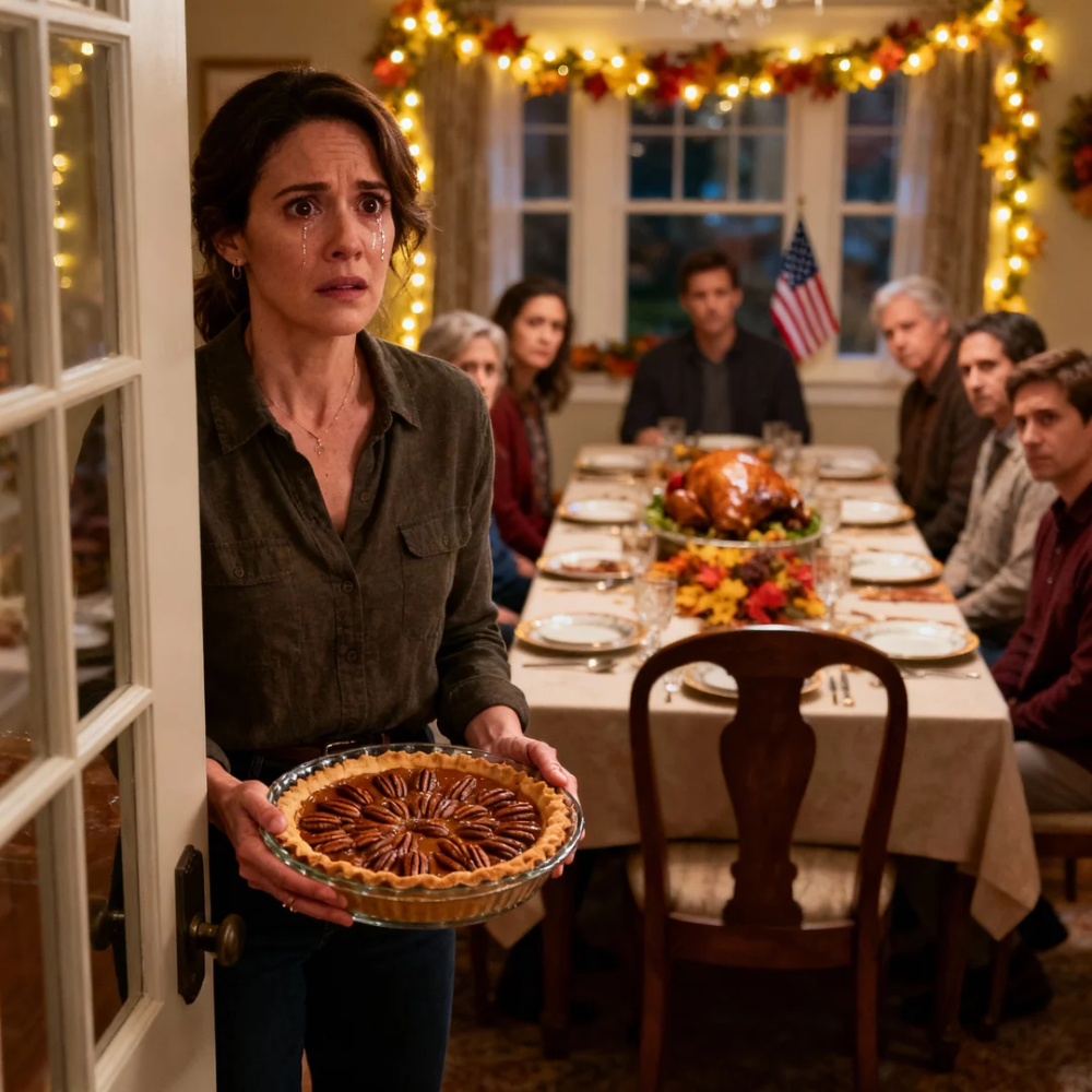 I stood in the doorway with Grandma Ruth’s pecan pie warming my palms through the glass dish, the crust still glossy from the egg wash, the lattice browned just the way she liked it. The house in suburban America—one of those postcard neighborhoods where every lawn looks combed and every front door wears a seasonal wreath—was packed tight with relatives. Twenty-three of them. A living, breathing wall of faces and laughter and clinking glasses that stopped just a fraction when I walked in, not because they were surprised to see me, but because silence had become the family’s reflex whenever I entered a room.