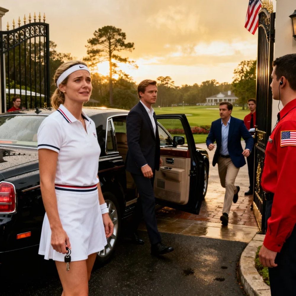 It was subtle at first, like a hairline crack running across glass—still shiny, still holding its shape, but ruined the second you noticed it. Her keys hung mid-swing between two manicured fingers. Her tennis whites looked pressed by someone who didn’t believe in wrinkles—collar crisp, skirt perfect, shoes so clean they looked staged. She turned slowly, like the world had shifted and she needed to see what hit her.