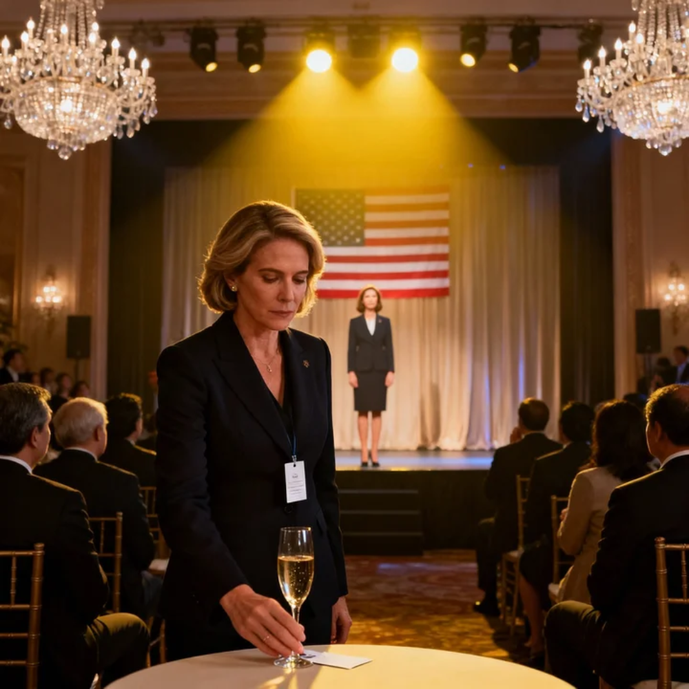 Applause—thick, polished, expensive applause—rolling across a chandeliered ballroom like a warm wave. Crystal glasses trembled on white-linen tables. A string quartet held a triumphant note just a second too long. This was the sound of victory in America, the kind that echoed off marble walls and into press releases before the night was over.
