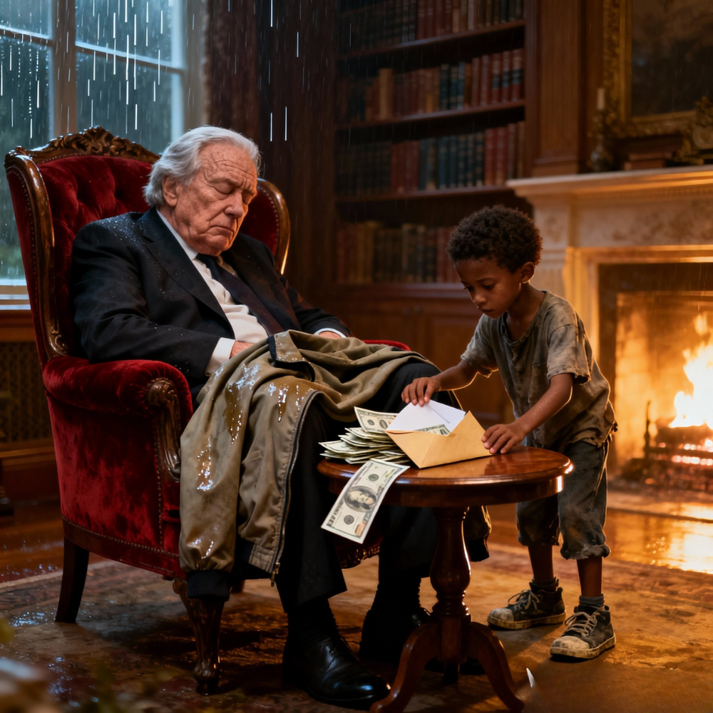 From the doorway of his private library, framed by the rain-streaked windows and the glow of a dying fire, he looked like every cliché of an aging American billionaire: slumped deep into a burgundy velvet armchair, chin tucked toward his chest, mouth slightly open, gray hair mussed like he’d nodded off in the middle of some Wall Street Journal article about the stock market. Outside, a late-autumn storm hammered the coastline of the northeastern United States, slapping cold rain against the windows of his mansion just outside Boston, Massachusetts. Thunder rolled somewhere above the Atlantic.