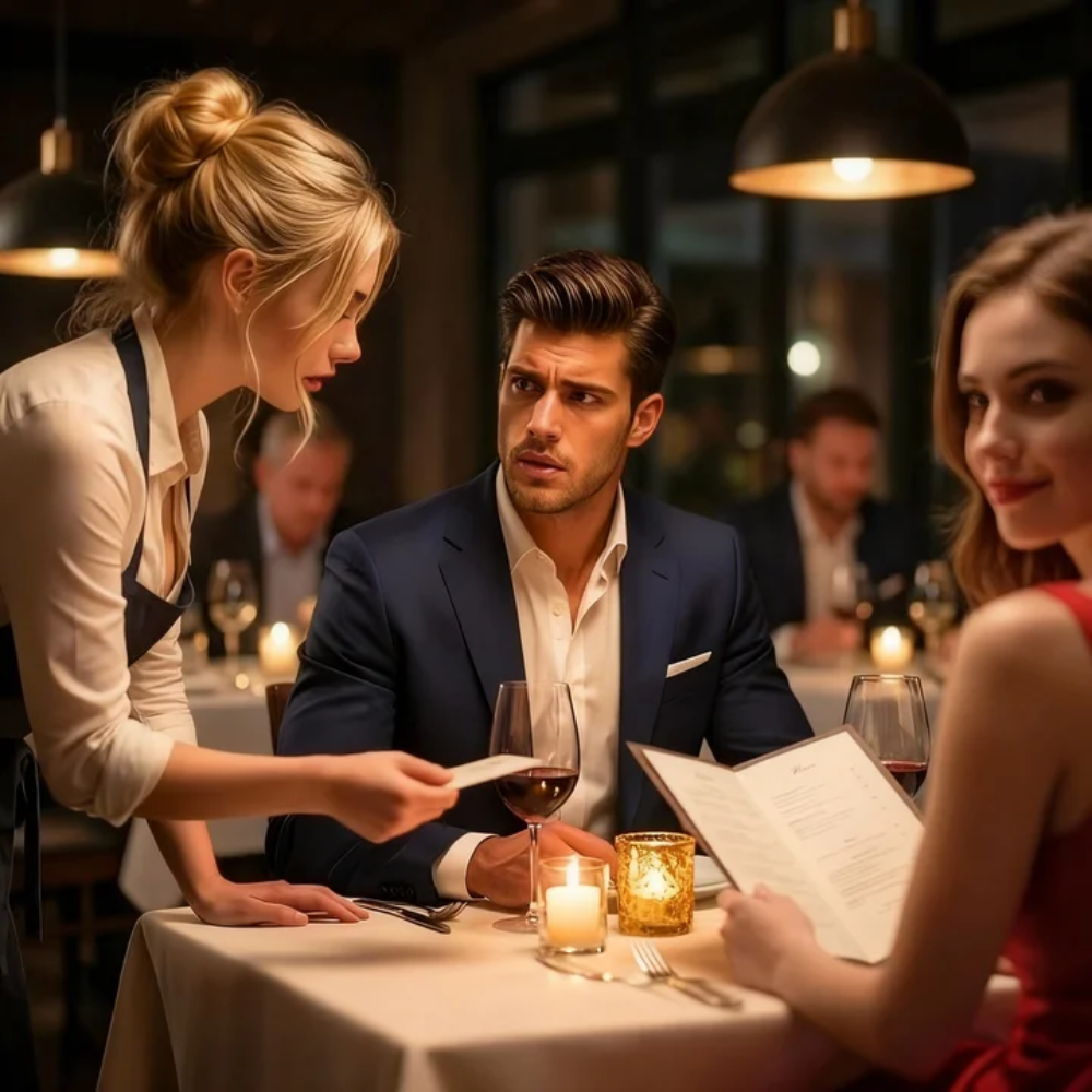 When the check came, Ethan reached for his wallet. He stood and buttoned his jacket with calm precision. Sabrina’s eyes followed him, bright with expectation.