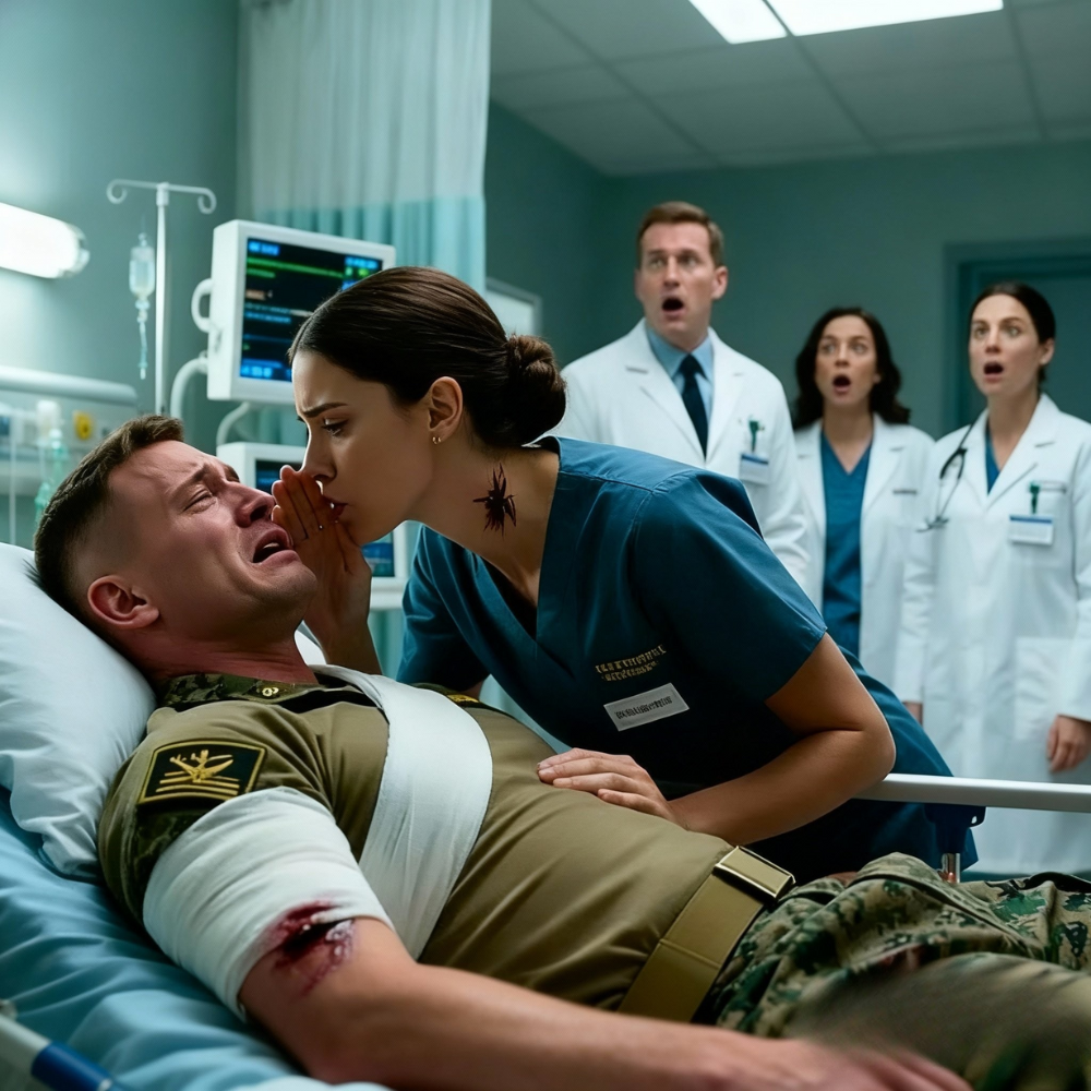 His ragged breathing slowed. The monitor over his head showed his heart rate dropping out of the red zone and back toward something survivable. The nurses around the bed froze in place, mid-motion, watching the impossible happen.