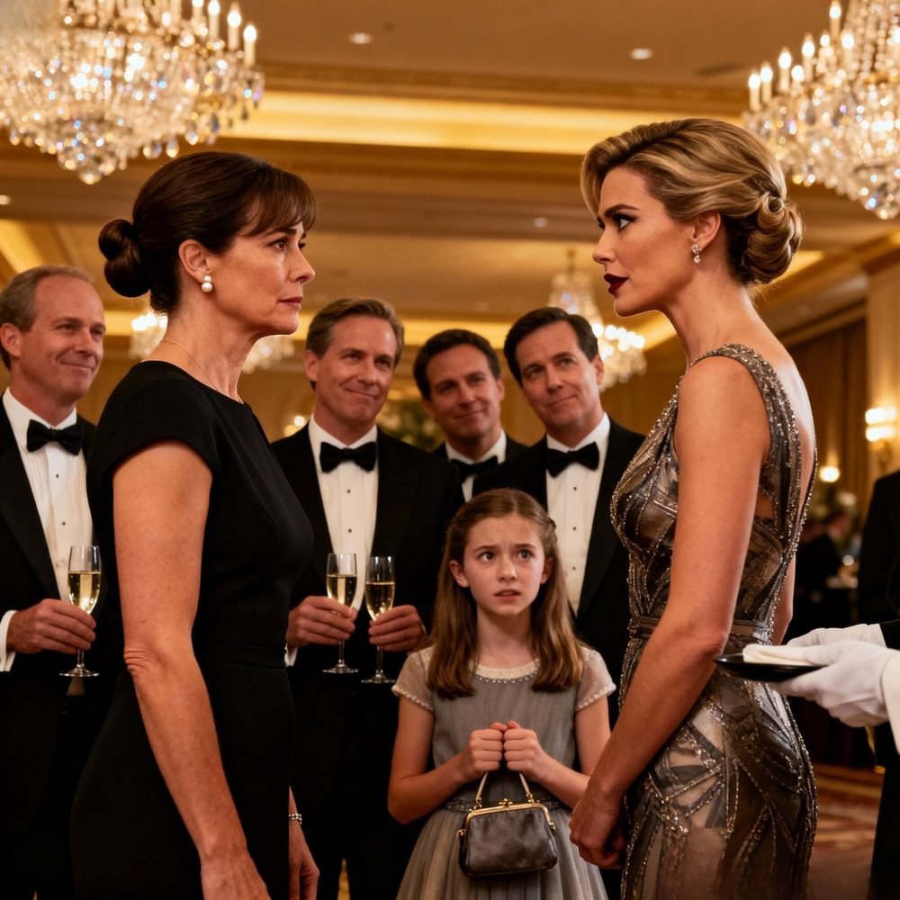I gestured to Zoey, who was standing slightly behind me, her fingers pressed so tightly into the beaded clutch that her knuckles had gone white. Her cheeks were flushed with anger, a bright, hot color that made her look suddenly older than fourteen and younger at the same time. She’d spent an hour getting ready, practicing walking in low heels in the living room, asking if her dress—a simple black to match mine, at her insistence—looked “professional enough.”