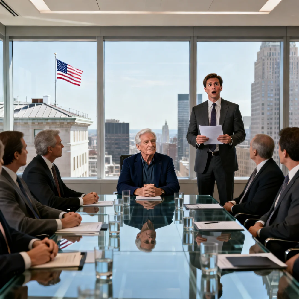 He walked in mid-conversation, confident, presentation binder tucked under his arm. The look of a man who believes the outcome is a formality.