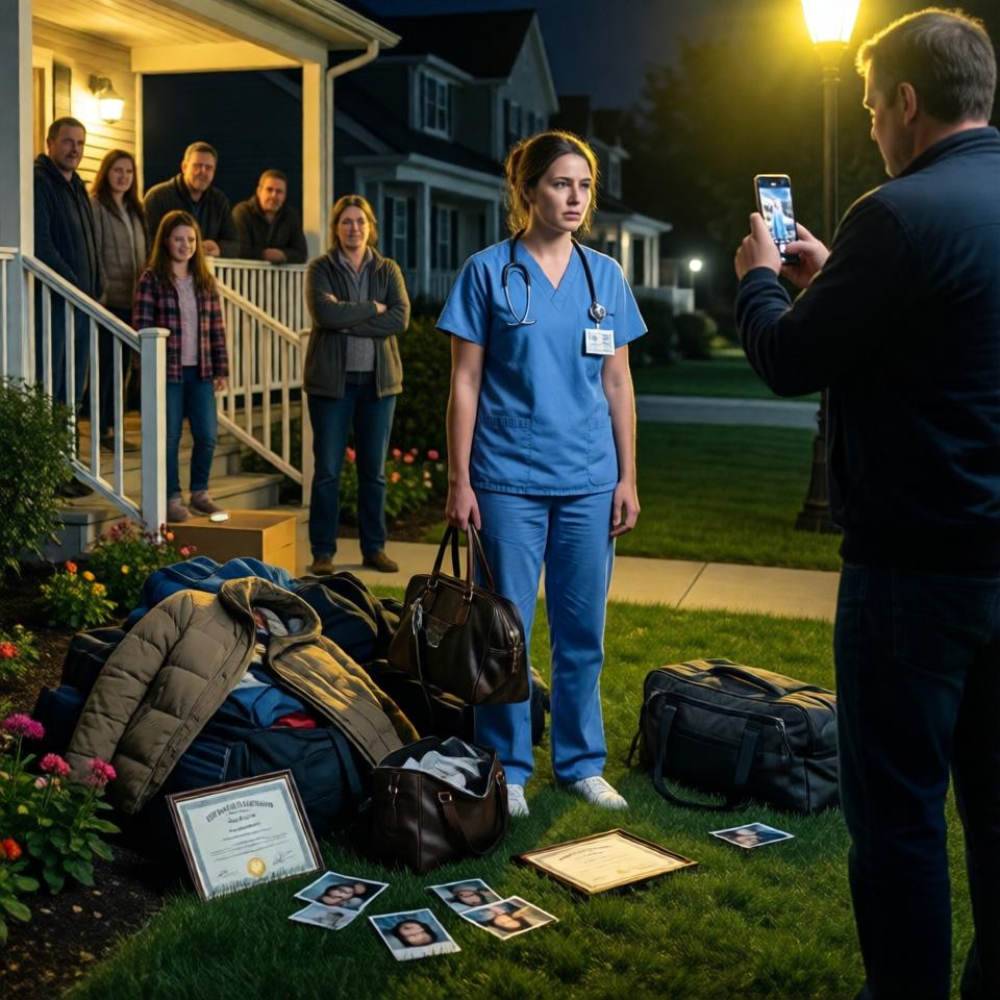 My textbooks first, because they mattered and because I knew if I left them there overnight the dew would warp the pages. Then the duffel. Then the framed certificates. Then the bag with my scrubs. Then the lamp, because even broken things can still be yours. My father kept talking the whole time, delivering his anger for the benefit of the neighborhood like he was giving a statement at a press conference. My mother stayed on the porch like a witness too tired to testify. Tessa alternated between laughing and staring at her phone. Nobody moved to help.