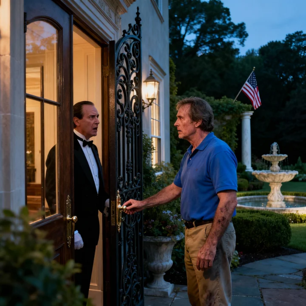 For a second I just stood there on the Harringtons’ front steps, palm pressed to polished metal, staring at my own reflection warped in the glossy mahogany like a man caught in a funhouse mirror—older than he feels, calmer than he should be, dressed like he wandered into the wrong life.
