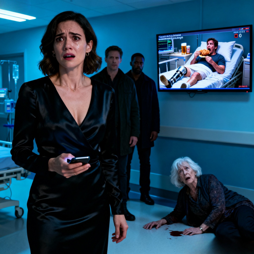 By morning, I had arranged access to the hospital’s internal security footage. Sitting alone in my car in the underground parking garage, I watched my husband—supposedly immobilized—sit up, swing his casted legs, eat fried chicken, drink beer, laugh with his cousin, and calmly plan to sell my inherited Lincoln Park brownstone to pay off gambling debts and disappear with her.