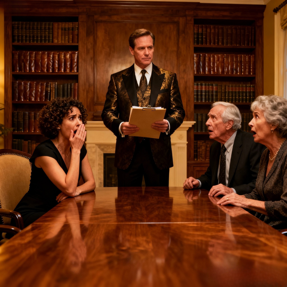 “To my devoted staff,” Sterling continued. “Thomas, my driver; Martha, my cook; and Henderson, my gardener, I leave five hundred thousand dollars each, tax-free.”