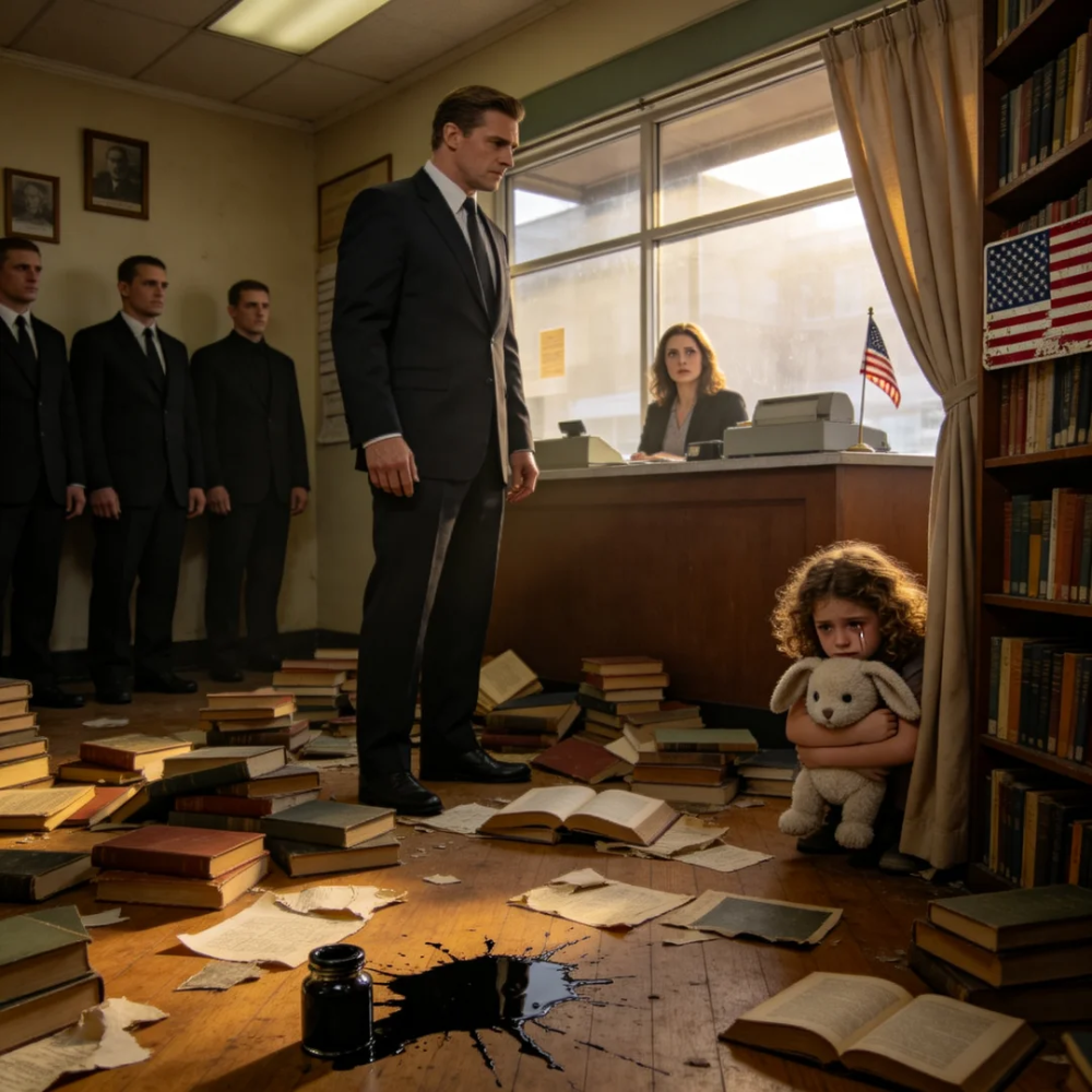 The first thing to hit the floor was not a book but a sound—a hard, ancient crack, like a small piece of history snapping in half inside a quiet American morning.