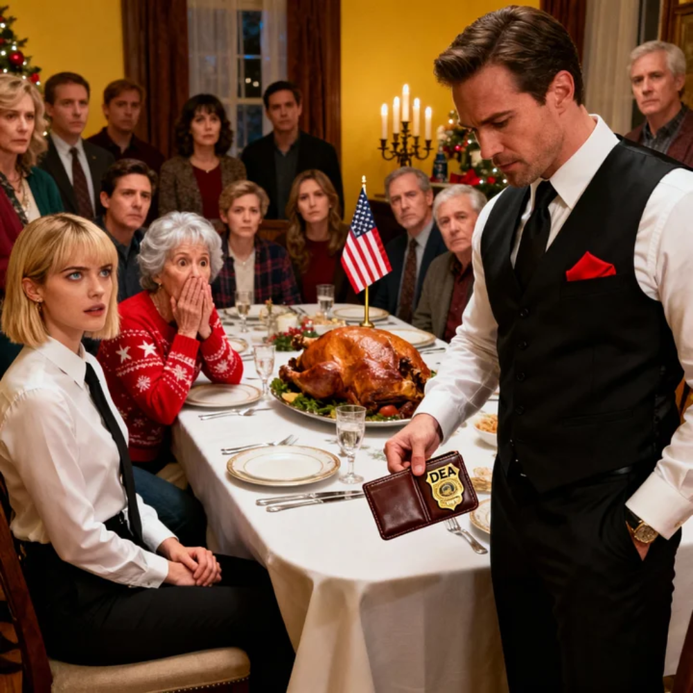 She didn’t clink a glass. She didn’t smile. She didn’t say, “I’m grateful for family” the way people do when they’re about to offer a harmless toast. She stood with the slow confidence of someone who has rehearsed her lines in the bathroom mirror. She smoothed the front of her red sweater—of course it was red, of course it had tiny stitched snowflakes that caught the light—and cleared her throat like she had the right to call the entire room to attention.