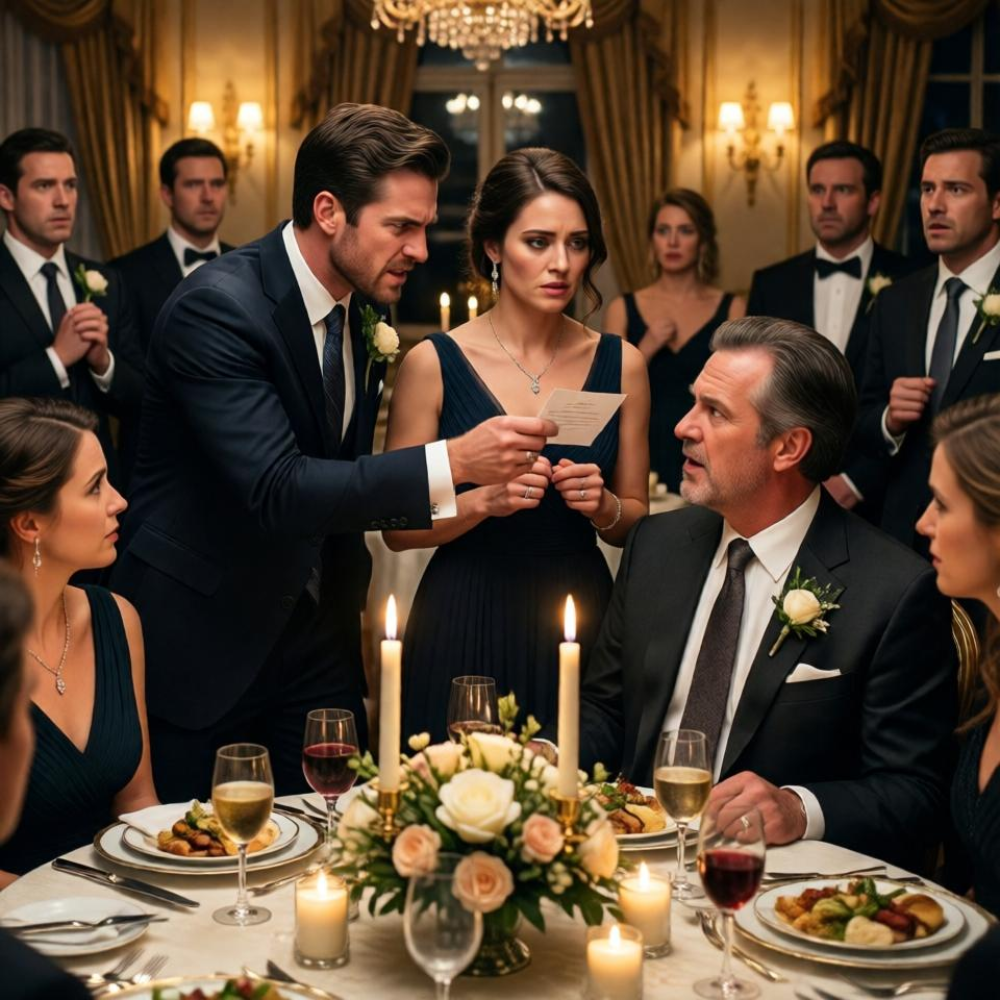 The sound itself was small, just heavy paper splitting under steady hands, but in that silence it cracked across the room like something structural giving way. A few people shifted. Someone drew in a quick breath. The bride, Claire, turned toward her father so abruptly that the jeweled earring at her left ear caught the light and flashed.