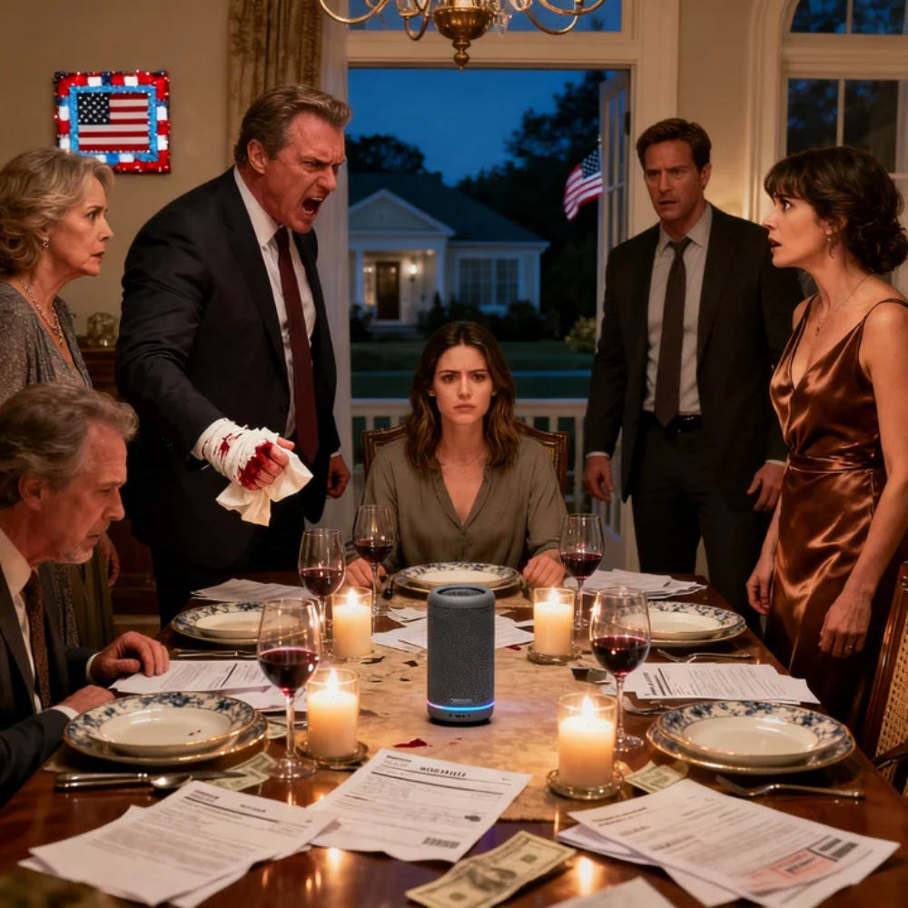 It spread table to table like brushfire across dry Kansas grass. Guests who had been sipping champagne a heartbeat earlier now leaned toward one another behind lifted napkins and manicured hands. Men in tailored jackets stiffened with the discomfort of witnessing something so intimate and ugly they did not know whether etiquette required intervention or silence. Women who had come for a society wedding found themselves unexpectedly seated inside a public execution. Younger cousins stared openly. Older donors from the hospital foundation blinked as if their social training had failed them. Servers paused in the corners with silver trays balanced in their palms. The groom’s new bride, Sophie, looked confused first, then horrified, then trapped by the impossible geometry of loyalty and truth.