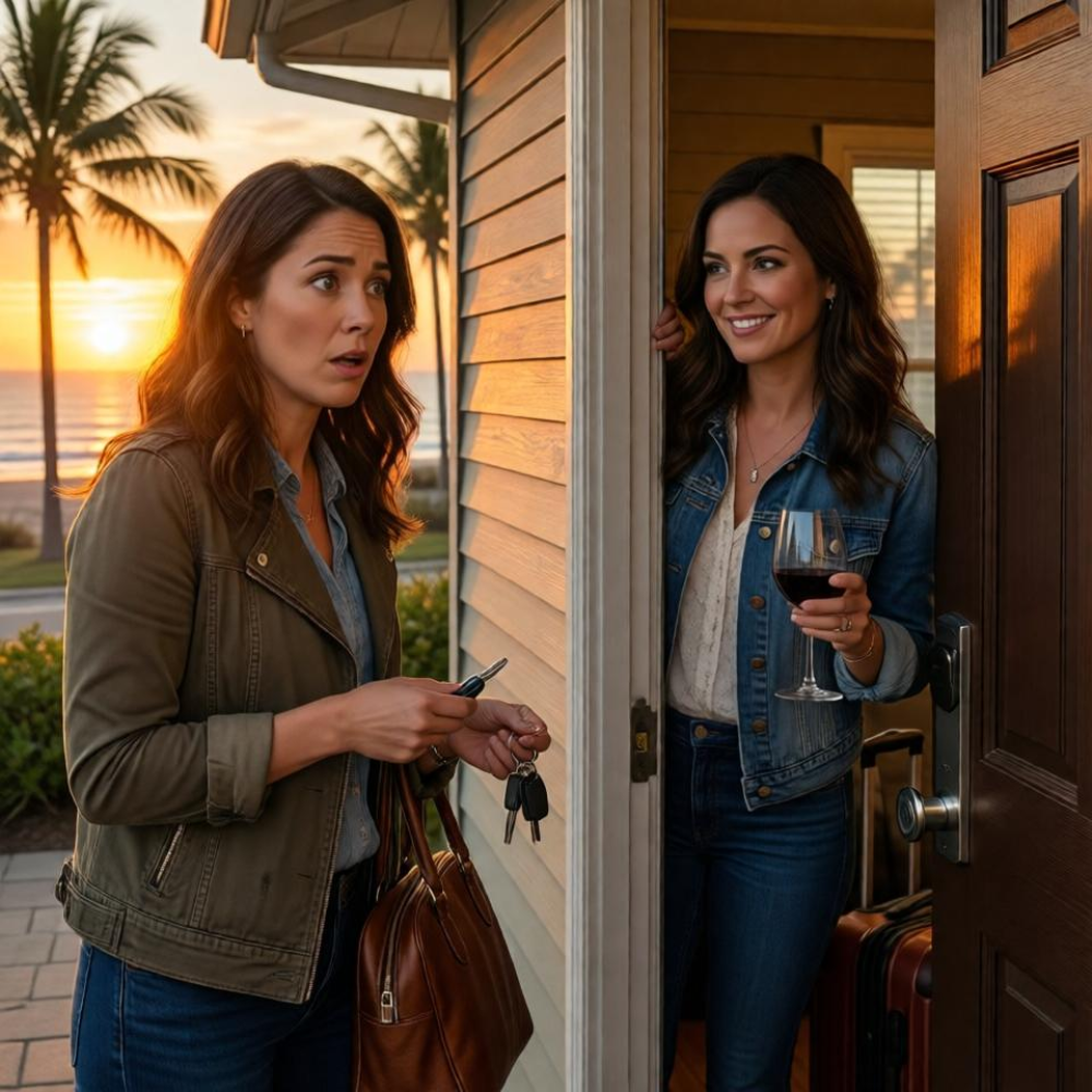 Two floral suitcases sat near the staircase. A pink throw—soft, unnecessary, distinctly not my grandmother’s—was draped over the wicker chair in the corner. One of Karen’s wedding photos, framed and smiling, had been placed on the hallway console where sunscreen and bug spray used to live. It wasn’t a full takeover. It was something more calculated. A staging.