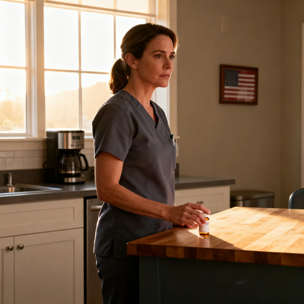I stood there in my hospital scrubs, shoes kicked off by the door, hair pulled into the kind of tight bun that survived overnight pharmacy shifts and emergency consultations. I was counting out my blood pressure medication into a plastic pill organizer, the soft rattle of tablets loud in the quiet kitchen.