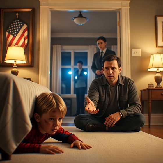 An officer crouched slightly, trying to be gentle. “Son, who hurt you?”