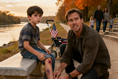 At the park with my son. he tugged my sleeve. “Daddy, don’t react. just look at my ankle.” i knelt down. pretended to tie his shoe. what i saw made me stop breathing. i didn’t scream. i didn’t cry. i picked him up. walked to the car. drove straight to the hospital. i made a phone call. exact six hours later, my father-in-law went pale because…