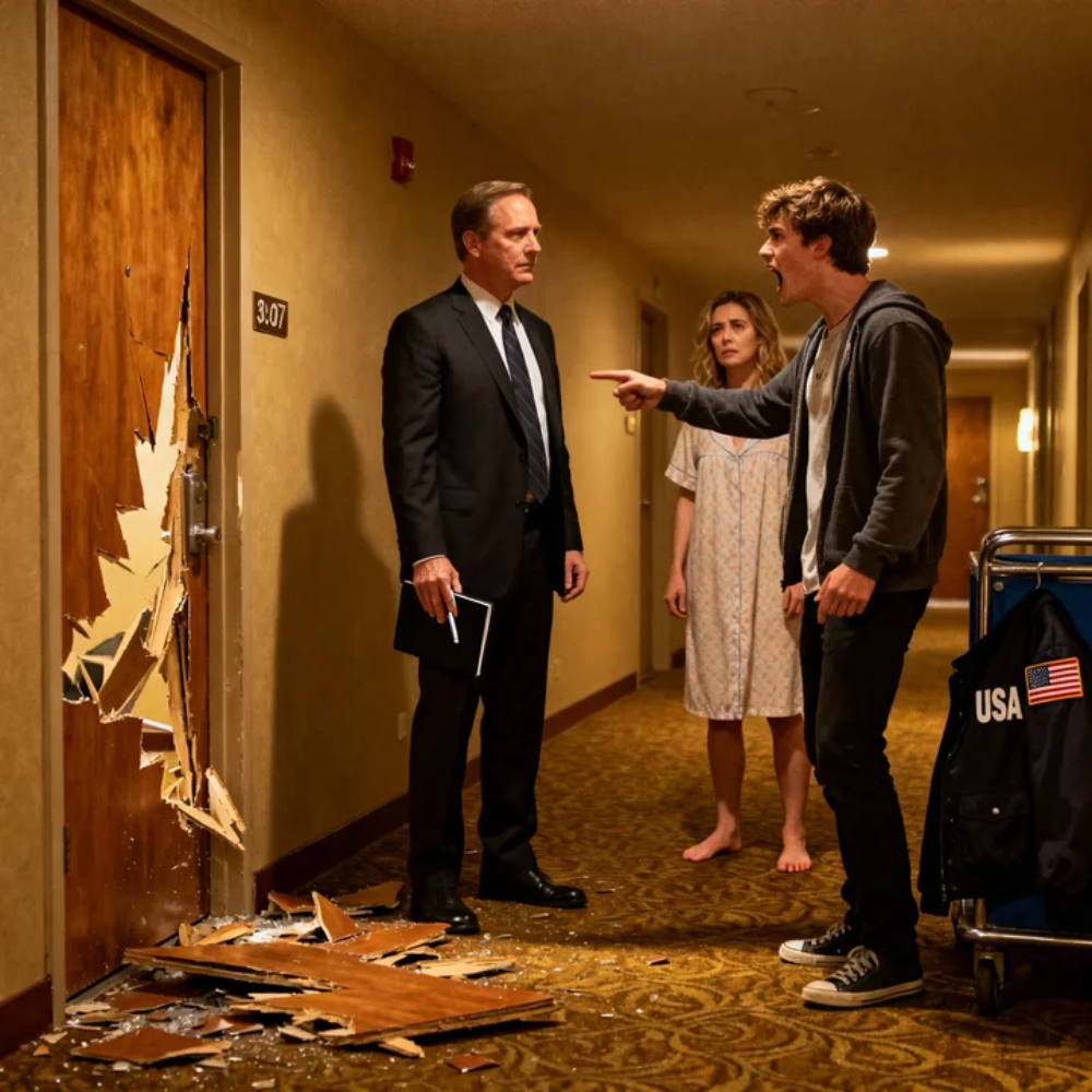 Not the crash—not the splintering wood, not the drunken shouting, not even my own heartbeat thudding like a warning drum in my chest. The first thing I remember is the specific, ugly snap a hotel door makes when it stops being a door and becomes a lesson.